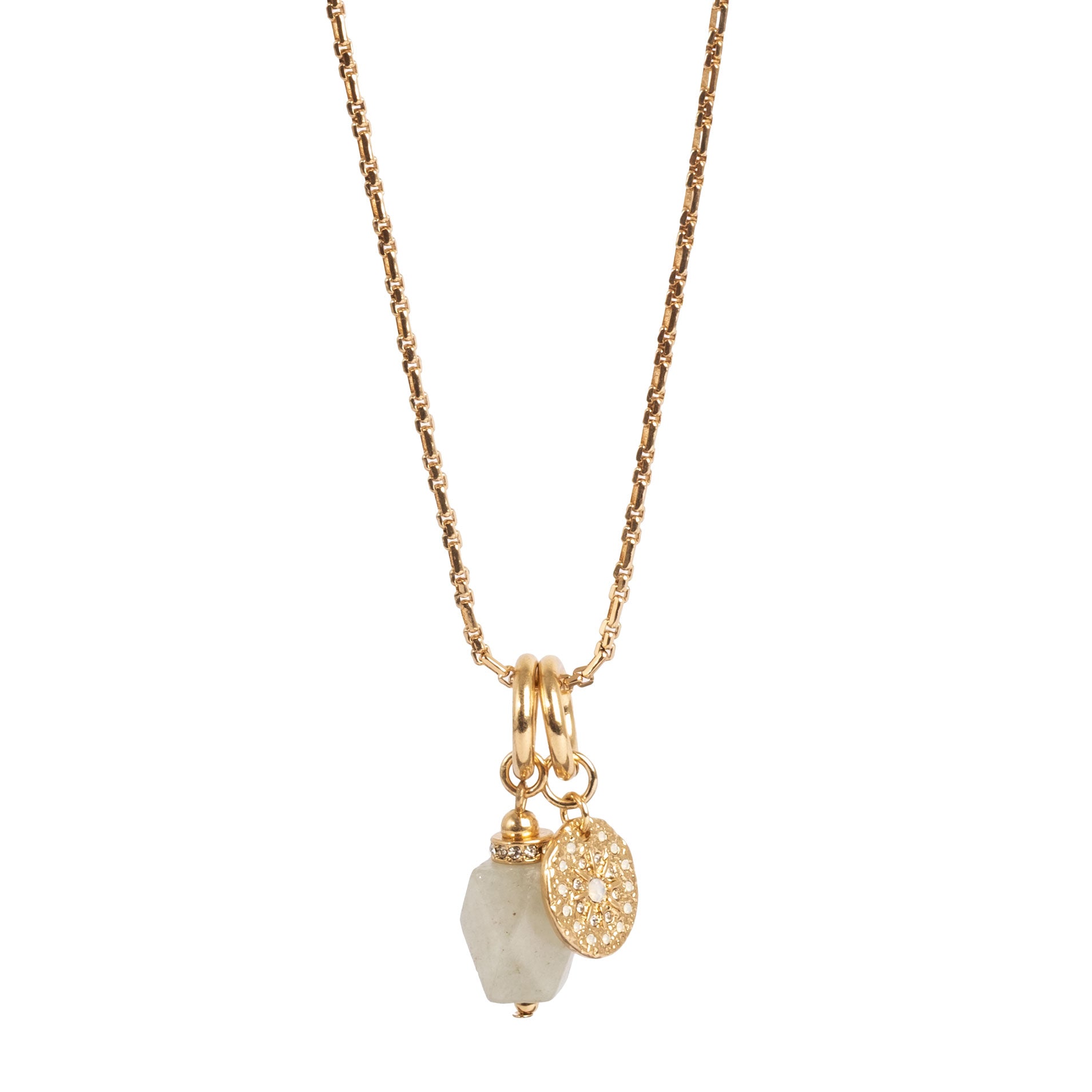 Halskedjan och smycket är belagt med äkta guld och kan enkelt kombineras med andra smycken i samma eller annan kollektion.