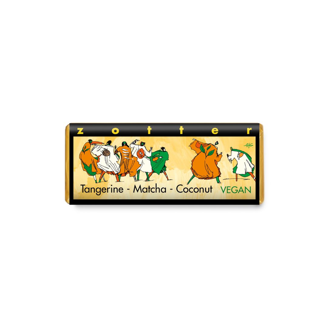 Pralinkaka från Zotter, Mandarin + Matcha + Kokos 70g (Vegansk)
